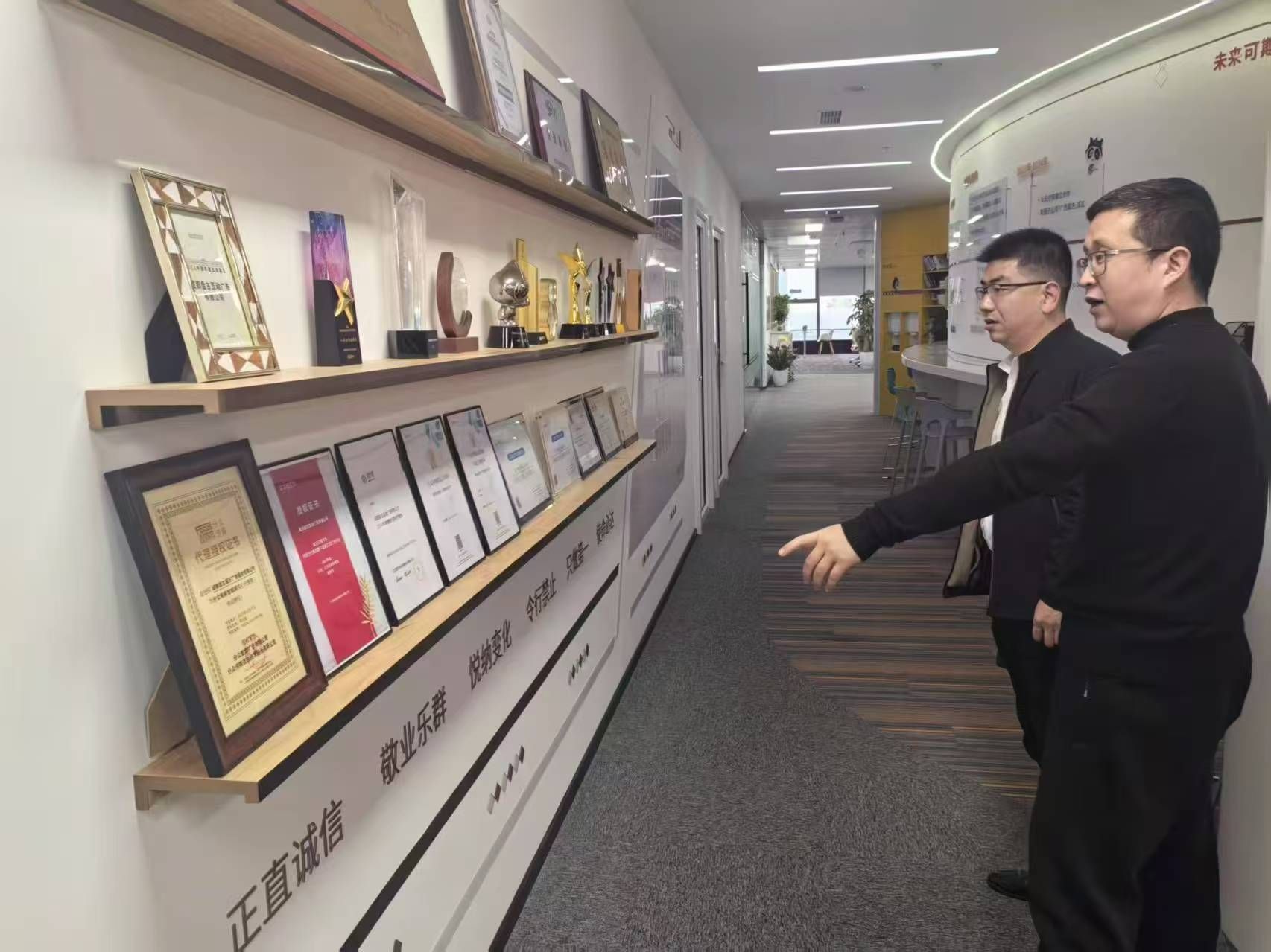 成都盘古之星信息科技有限公司创始人、石子星(12级校友)对学院领导的到来表示热烈欢迎,他向学院领导介绍了公司主营业务、技术研发方向及行业应用案例。交流中,石子星深情回忆在校时的求学经历,表达了对学校多年来教育栽培的感谢。魏永峰对校友企业成就表示肯定,同时向校友们介绍了学校、学院发展现状及学院校友分会筹备情况。