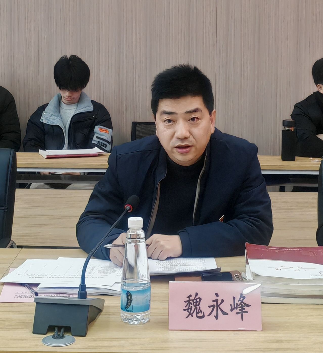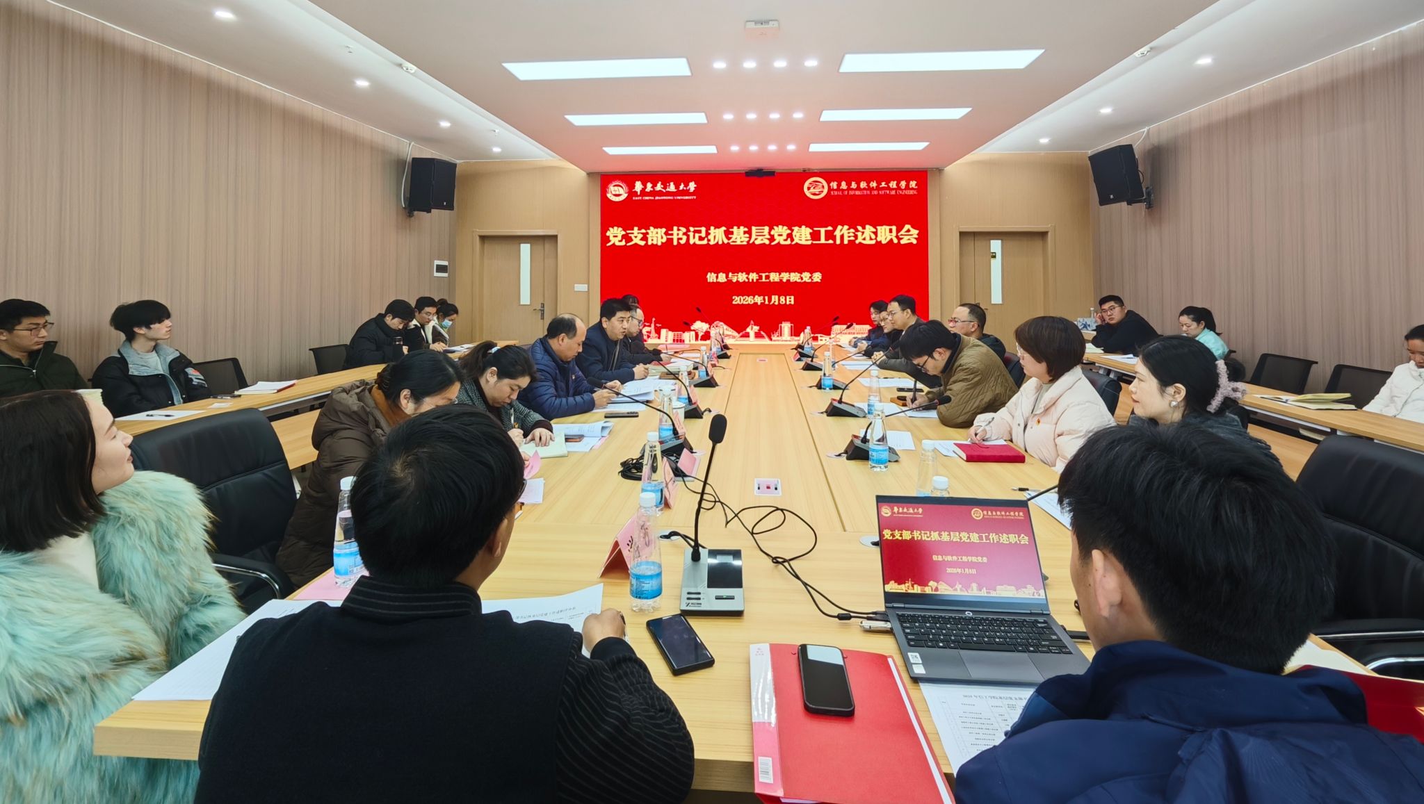 1月8日下午,信工学院党委在26号楼9楼第一会议室召开2025年度基层党支部书记抓党建工作述职评议会。材料学院党委书记赵龙志、党委组织员孟书慈到会指导,信工学院党委书记魏永峰、各基层党支部书记及教师代表参加会议,学院党委副书记冯荣刚主持会议。