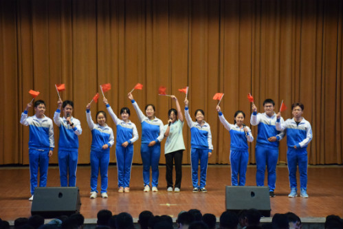 表演完毕,队员们带领观众用青春“告白”祖国。400余名新生起立与队员一同呐喊:“圆梦新时代,青年当做忠诚担当的接班人,当做理想坚定的奋斗者,当做知行合一的实干家。”