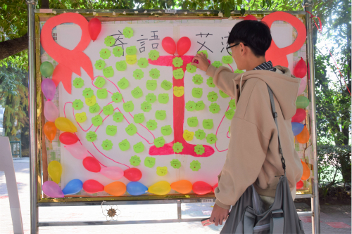 在有奖问答环节中,“艾滋病有哪些传播途径?”、“艾滋病的潜伏期有多长?”……同学们正在对有奖问答的题目冥思苦想,大家纷纷表示在思考中对艾滋病相关知识有了更深入的了解。“希望我们的每一个拥抱能给予他们温暖和鼓励”、“愿世界多一些善意,平等对待艾滋病人”……爱心墙上的话语让路过的人们都有或多或少的感触,停下脚步去写下对艾滋病感染者的祝福与关爱。
