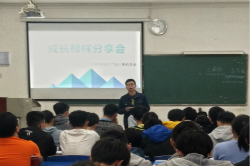 为贯彻落实《信息工程学院关于开展“改作风、正师风、优学风”主题教育活动实施方案》有关要求,促进同学们完善自我职业生涯规划,4月16日,信息学院2017级计算机专业于逸夫楼405室召开成长榜样分享会,本次会议邀请到2015级计算机专业优秀学生代表郭宇辉、王嘉伟、郝铮铮进行经验分享,会议由辅导员艾国金主持。
