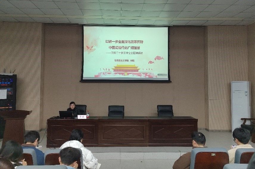 12月3日,信息与软件工程学院分党校于教五栋108报告厅举行第一期发展对象党课培训班第五讲课程,此次课程由马克思主义学院党委副书记、副院长李曦教授主讲,为学员们深入解读党的二十届三中全会精神。