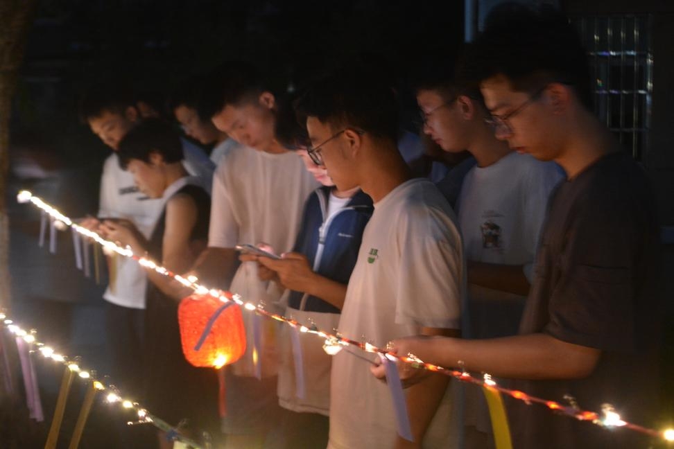 天色渐晚,圆月初升,此次活动正式开始。同学们在活动现场制作小橘灯以及团扇等精美的物品,既能够互相分享喜悦和乐趣,又能够体验到其中的文化之美。猜灯谜活动更是引来不少同学参与,谜面有猜字的,猜成语的,还有猜人名和地名的,充满趣味性与知识性。一旁的中秋留言板处,同学们亲笔写下对自己的寄语,对生活的期许,对学校的祝福以及对祖国的热爱。活动现场处处洋溢着中秋佳节的温馨气氛。