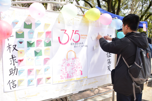 “ofo小黄车退押金难”、“网络订票收取高额退票费”、“预付式消费现‘套路贷’”,近一年里部分侵权事件与大学生日常生活存在紧密联系。在第三十七个国际消费者权益日之际,信息学院在校开展3.15消费者权益日系列宣传活动,为消费者合法权益发声。