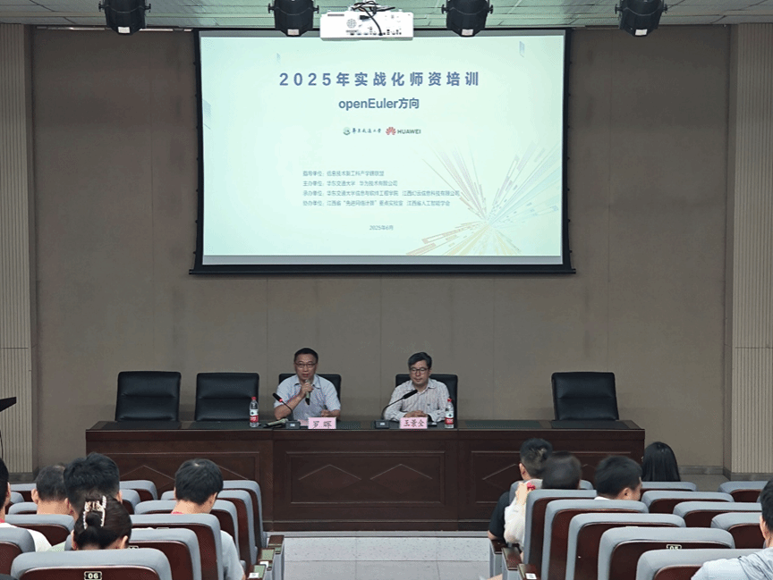 为贯彻落实国家科技自立自强战略,深化产教融合创新机制,2025年6月14日-15日,华东交通大学信工学院(ICT现代产业学院)与华为技术有限公司联合主办“信创基础软件人才高级研修班”。本次研修以“产教协同育英才,技术赋能促发展”为主题,吸引了来自全国13所高校的近50名计算机专业骨干教师参与。