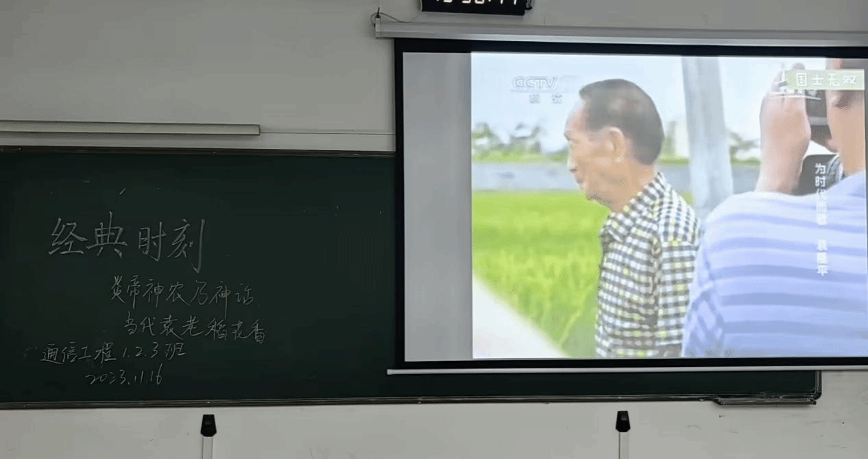 11月16日,信息学院2023级通信工程1、2、3班开展第六次“经典时刻”活动中——观看央视纪录片《为时代而歌:袁隆平》。在观影过程中,同学们深刻感受到“杂交水稻之父”袁隆平精益求精的科研精神和精忠报国的家国情怀,在这背后,也看到了他生动的、充满烟火气的生活故事。