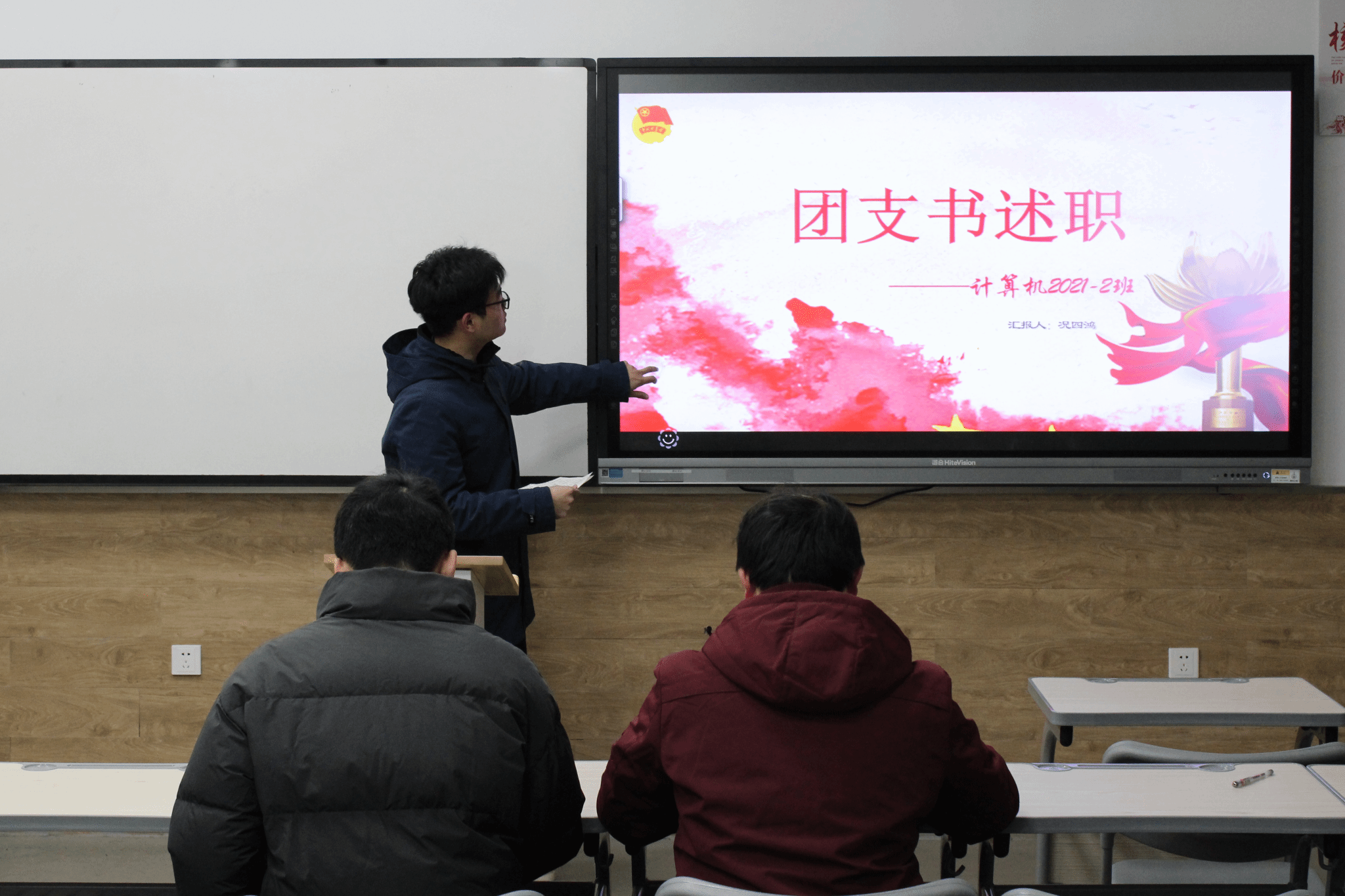 为进一步提升学院团组织活力,加强学院基层团组织建设,12月22日,信息学院于25栋110室、111室、112室、113室召开团支书述职大会。信息工程学院学工办主任兼团委书记艾国金、学工办副主任兼团委副书记李萌萌、2023级学生辅导员出席本次大会并担任评委,信息工程学院各班团支书参加。