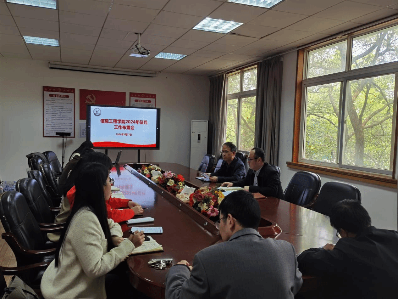 3月27日上午,信息学院召开2024年征兵工作布置会。会议传达了学校关于学生征兵工作会议精神。院党委书记何仲坚出席会议并讲话。院党委副书记冯荣刚主持会议。