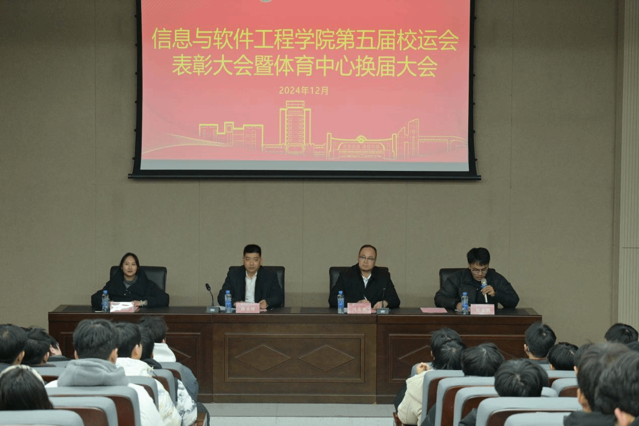会上,冯荣刚和李萌萌分别宣读了《关于表彰信息与软件工程学院2023-2024学年体育工作优秀个人的决定》和《关于公布信息与软件工程学院2024-2025学年体育中心、田径队、俱乐部负责人名单的通知》。学生代表朱少彦、黄盈资分别就一年的工作成果与未来的发展方向做总结与梳理。