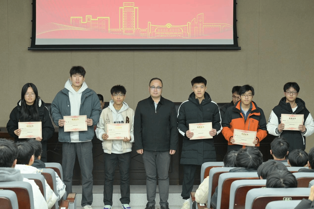 冯荣刚为第五届校运会“优秀运动员”获得者代表颁奖