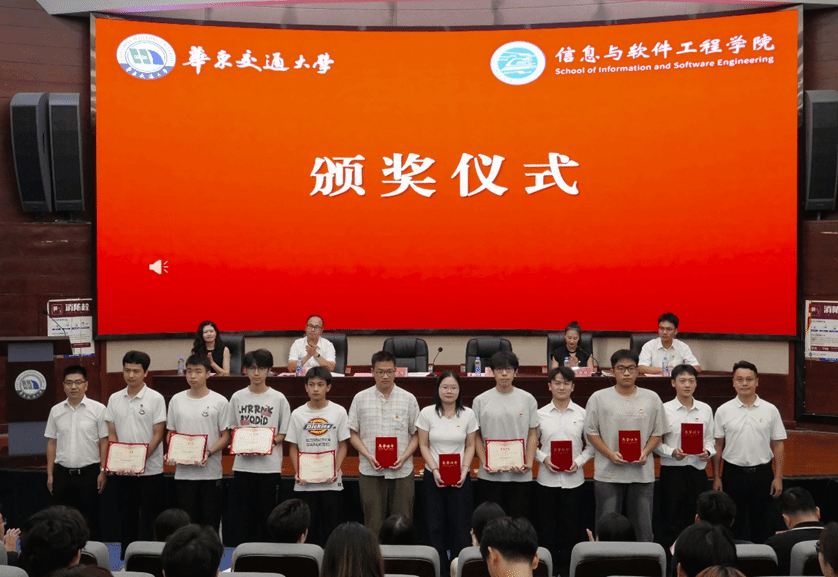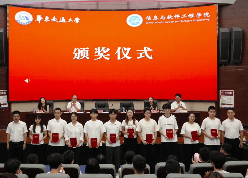 冯荣刚宣读了《关于表彰信息与软件工程学院2024-2025学年团学组织优秀个人的决定》及《关于任命信息与软件工程学院2025-2026学年学生会及团属组织学生骨干的通知》。高旭与魏永峰共同为受表彰同学颁发荣誉证书。