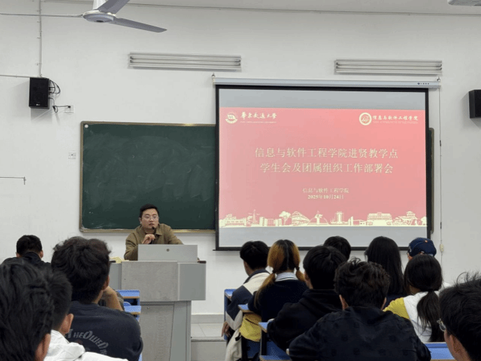 为进一步落实共青团各项工作,增强信息与软件工程学院进贤教学点团属学生组织的凝聚力、执行力和战斗力,2025年10月24日,学院在进贤教学点教学楼313召开进贤教学点学生会及团属组织工作部署会。学院团委副书记洪亚聪、指导老师曾小康老师及进贤教学点全体25级团属学生组织负责人参会,会议由指导老师李诺言老师主持。