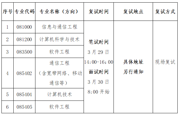 备注:具体见学院后期公布的考场名单,笔试、面试均需带好本人身份证原件。