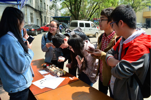 16级王强同学手拿着答对题目获得的鸡蛋兴奋地说:“这是我第一次参加清明节活动,感觉‘猜习俗,送鸡蛋’这一个环节很有意思,既能感受传统节日深厚的文化底蕴,又能乐在其中。”