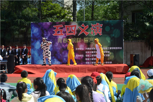 为弘扬五四先驱们所倡导的“爱国、进步、民主、科学”的五四爱国精神,发扬“以社会为己任,敢为天下先”的优良传统。4月28日,信息学子于交大子弟学校田径场倾情奉献主题为“青春•榜样•誓言”的五四义演活动,为建校45周年华诞献礼添彩。