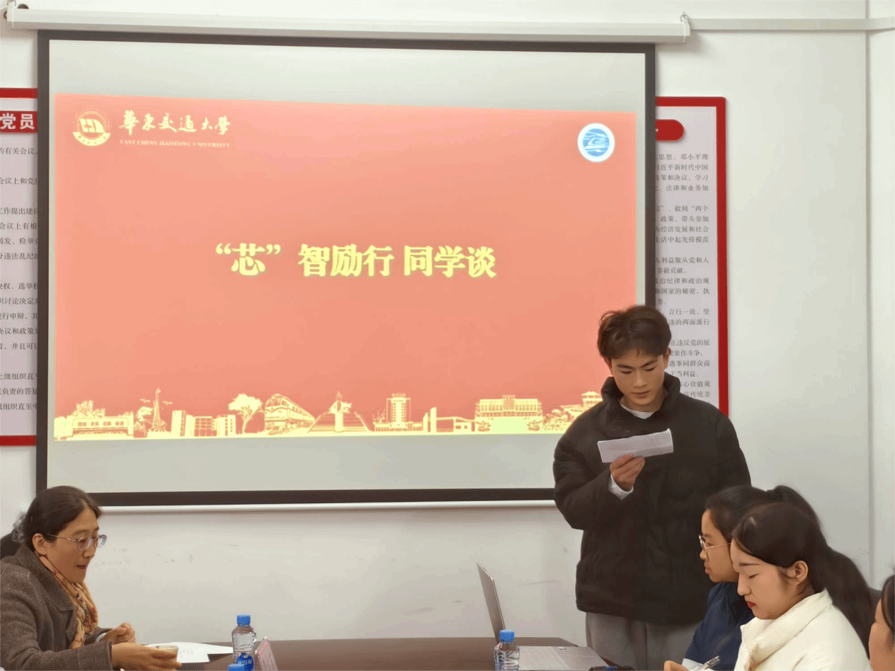 南华西·校长奖学金获得者雷利清同学、茅以升铁道希望之星获得者胡政汉同学、保研至中国科学院微电子研究所的张光炜同学作为青“芯”典范,分享了自身的成长经验,共谈学风建设的重要性。