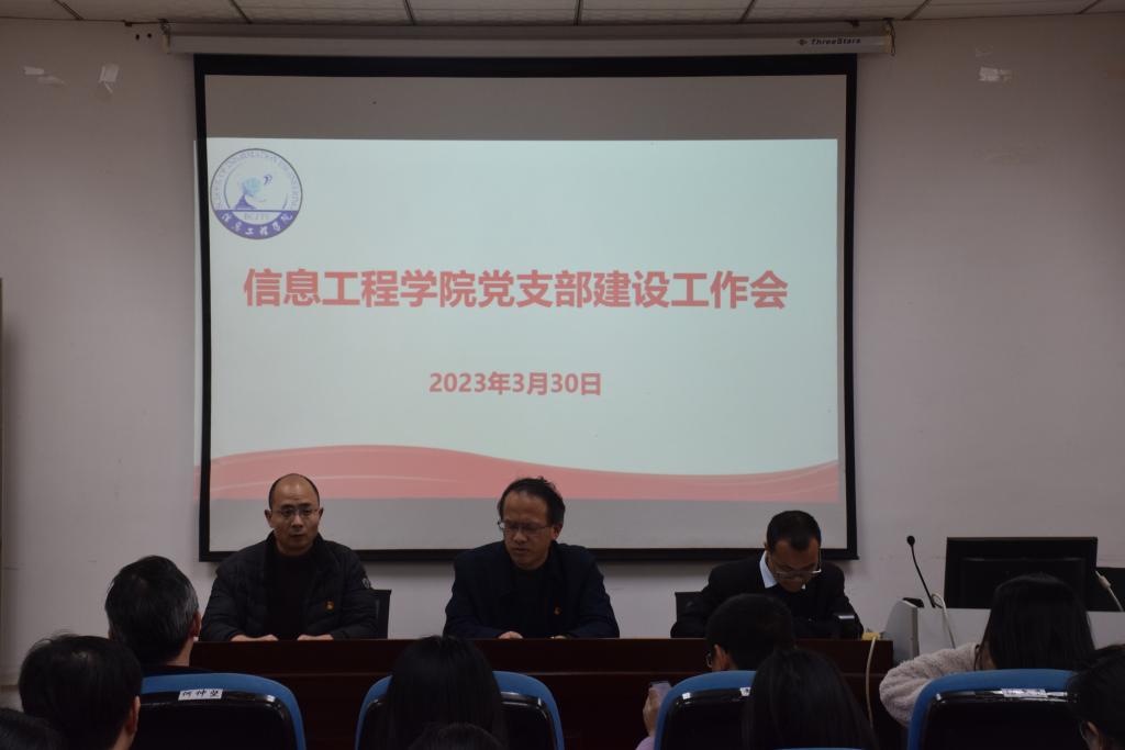 3月30日,信息工程学院于教4栋311召开党支部建设工作会议。院党委书记何仲坚、学院全体党支部委员及党教中心负责同志参会。