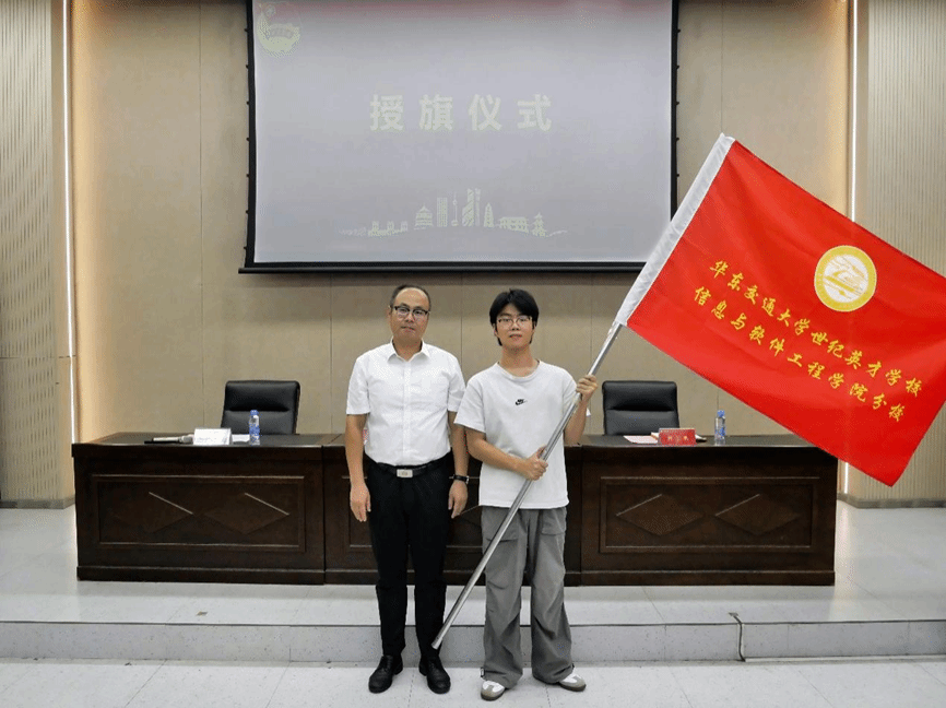仪式上,冯荣刚为班级授予班旗。李萌萌宣读了学院关于成立首期“世纪英才班”的决定,明确了培养目标与管理要求。学员代表施宏宇在发言中表达了荣幸与感激之情,并代表全体学员郑重承诺,将珍惜平台、锤炼本领,争做有理想、敢担当、能吃苦、肯奋斗的新时代青年骨干。